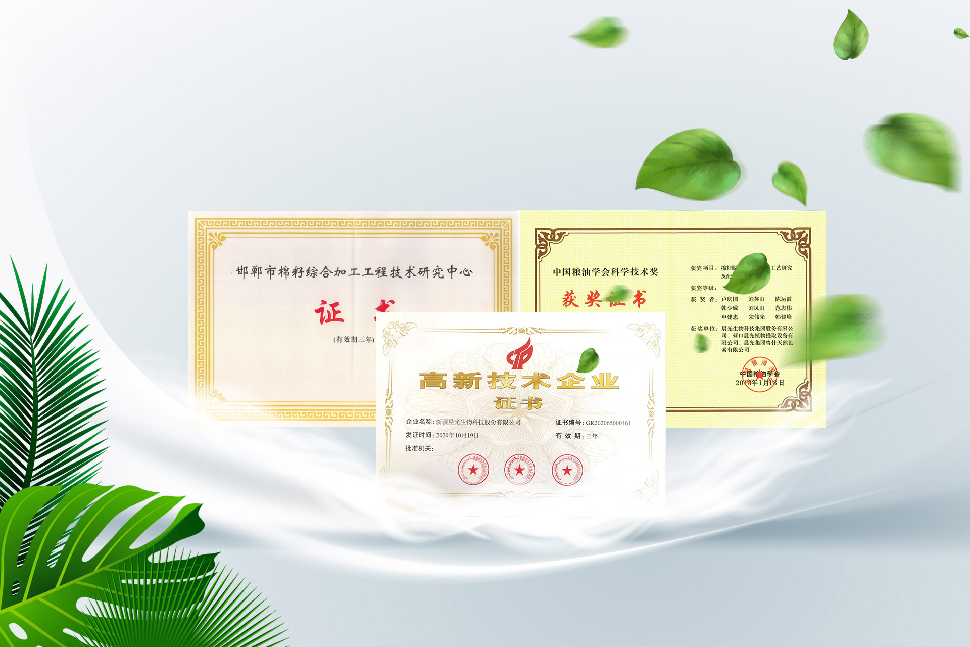 自主知識產(chǎn)權(quán)的專利93項,其中發(fā)明專利18項,實用新型專利75項。參與制定了國家供銷合作行業(yè)標準GH/T 1262—2019(棉籽殼)、國家農(nóng)業(yè)行業(yè)標準(棉籽品質(zhì)快速測定 近紅外法)